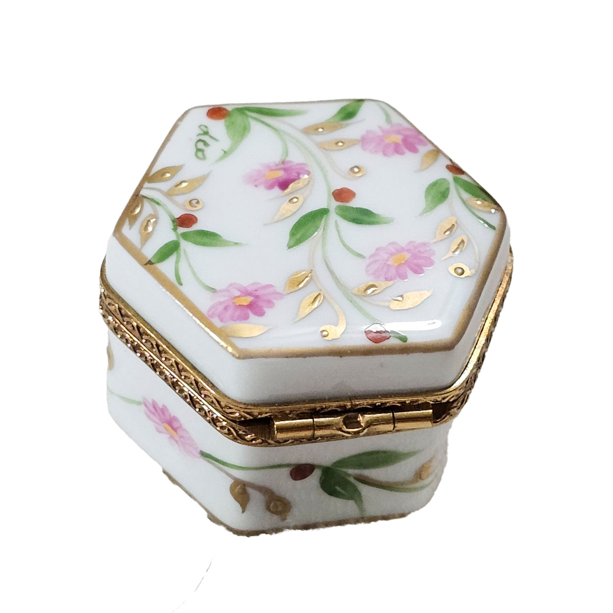 Experience the enchanting allure of the Mini Hexagonal Floral Treasure of Limoges Box, designed to add a touch of elegance to any decor and perfect for storing your cherished trinkets. This exquisite piece is not just a decorative collectible; it embodies luxury and sophistication tailored for discerning collectors and enthusiasts.