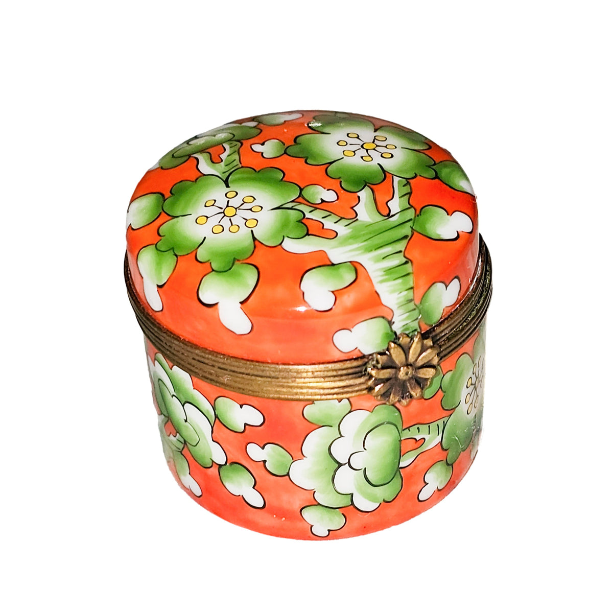 Introducing the Vibrant Orange Floral Limoges Box, a stunning decorative treasure that brings a burst of color and elegance to your home decor or collection. This exquisite piece is tailored for those who appreciate beauty and craftsmanship, making it the perfect addition to elevate your living space.